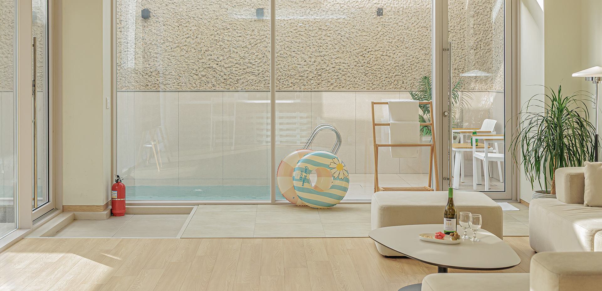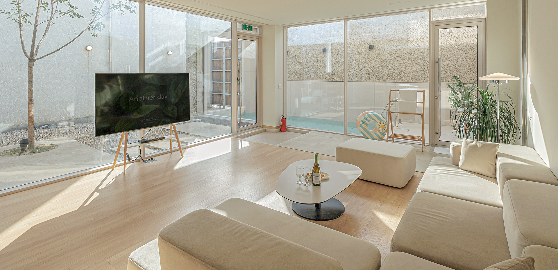 침대룸A(더블2) + 침대룸B(더블2) + 화장실2 + 거실1, 34평(약 113.0㎡), 복층, 테라스바베큐가능, 독채, 개별수영장